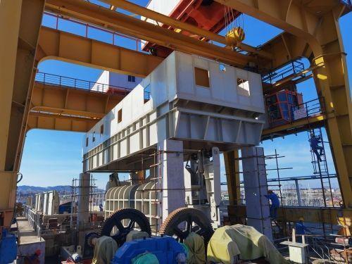 3月3日,塔吉克格拉夫那亞水電站技改工程溢洪道雙扉門啟動吊裝,歷經(jīng)40分鐘,穩(wěn)穩(wěn)吊入預(yù)定位置,大壩溢洪道雙扉門及鏈條式啟閉機(jī)更換工程步入新的節(jié)點(diǎn)。本次溢洪道鋼平臺的吊裝成功極大的降低了即將到來洪水期漫壩的風(fēng)險,待鋼平臺微調(diào)固定后即可對鋼平臺的機(jī)械及電氣設(shè)備進(jìn)行安裝與調(diào)試并投入使用。
