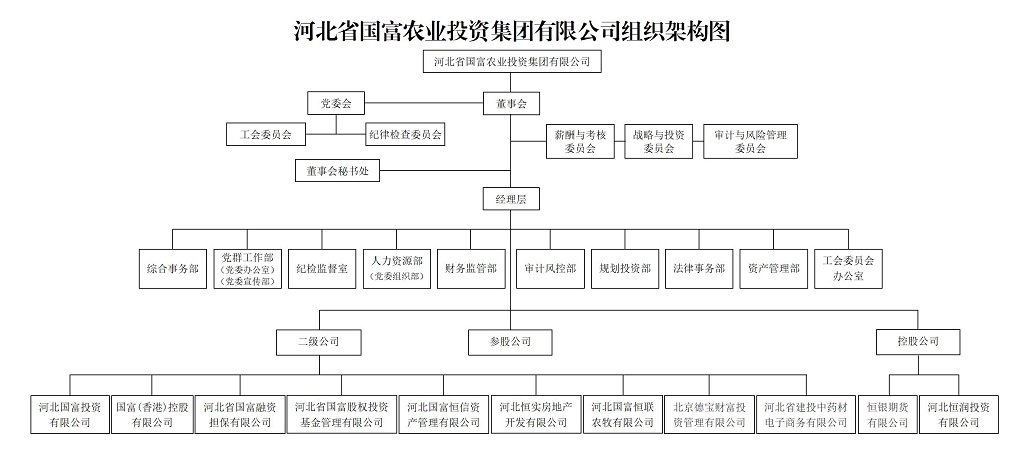 河北省國(guó)富農(nóng)業(yè)投資集團(tuán)有限公司成立于1992年,前身為河北省經(jīng)濟(jì)開(kāi)發(fā)投資公司。2001年11月,經(jīng)河北省人民政府批準(zhǔn),重組設(shè)立為河北省國(guó)富農(nóng)業(yè)投資集團(tuán)有限公司,注冊(cè)資本3.34億元。2017年3月,按照省政府安排全面劃轉(zhuǎn)至省國(guó)資委管理,是河北省國(guó)資委授權(quán)的競(jìng)爭(zhēng)類國(guó)有資產(chǎn)授權(quán)經(jīng)營(yíng)機(jī)構(gòu)。2024年7月,經(jīng)省委、省政府同意,省國(guó)資委決定將河北國(guó)富投資劃轉(zhuǎn)至河北建投集團(tuán)管理。