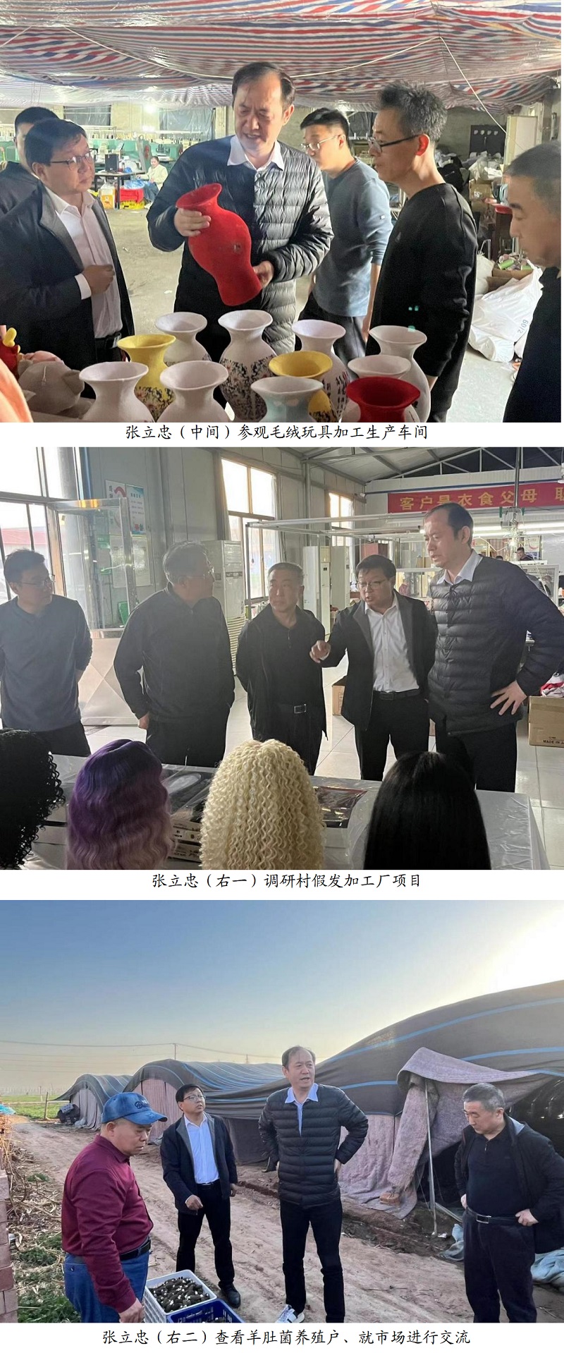 調研工作由曲周縣大河道鄉(xiāng)黨委書記王貴民陪同,參觀了毛絨玩具、假發(fā)加工車間和羊肚菌種植基地。會議中介紹了賈莊村當前發(fā)展狀況、存在問題以及未來發(fā)展規(guī)劃。下沉工作隊隊長齊連洪匯報了工作隊近期走訪調研及項目謀劃的工作進展和下一步工作打算。