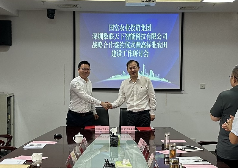 7月2日,國富農業(yè)投資集團與深圳數聯天下智能科技有限公司簽訂戰(zhàn)略合作協(xié)議,為國富農業(yè)投資集團加快培育農業(yè)新質生產力、打造省內一流高標準農田建設項目注入科技新活力。國富農業(yè)投資集團黨委副書記、副董事長、總經理張立忠,集團黨委常委、常務副總經理馬國棟,集團黨委委員、副總經理李其強,及相關業(yè)務骨干同數聯天下副總裁鄧才良一行進行工作研討并見證簽約儀式。