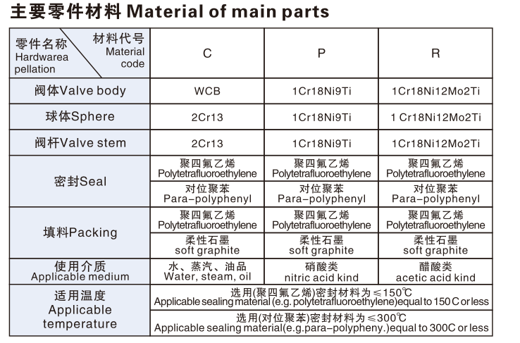 | 密封圈 | 聚四氟乙烯(PTFE)、增強(qiáng)聚四氟乙烯(PPL)、對(duì)位聚苯、柔性石墨 | |||