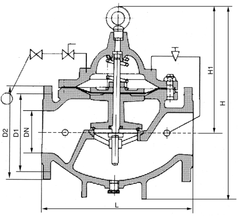 該閥主要安裝于水池或水塔的進(jìn)口處,當(dāng)水位達(dá)到設(shè)定高度時(shí),主閥由浮球?qū)чy控制關(guān)閉進(jìn)水口停止供水、當(dāng)水位下降后,主閥由浮球?qū)чy開關(guān)控制打開進(jìn)水口向水池或水塔供水,實(shí)現(xiàn)自動(dòng)補(bǔ)水。