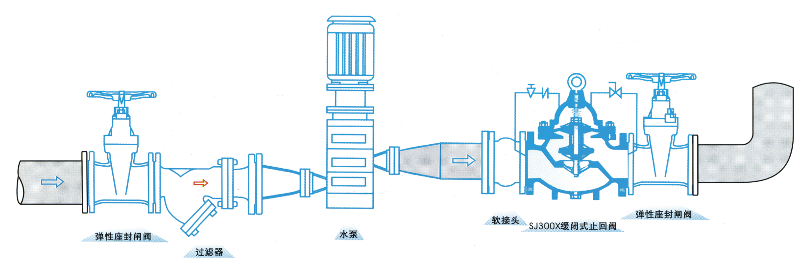 SJ300X緩閉式逆止閥由主閥、單向閥、針閥、球閥、微形過濾器和壓力表組成水力控制接管系統(tǒng)。利用水力自動操作,可使主閥得到****的開啟或關(guān)閉速度。防止水鍾水擊的產(chǎn)生,以達(dá)到緩閉消聲的效果。300X緩閉止回閥利用水力自力控制,不需要其它裝置和能源,保養(yǎng)簡便,開啟及緩閉平穩(wěn)。300X緩閉止回閥廣泛用于高層建筑、生活區(qū)等供水管網(wǎng)系統(tǒng)及城市供水工程。