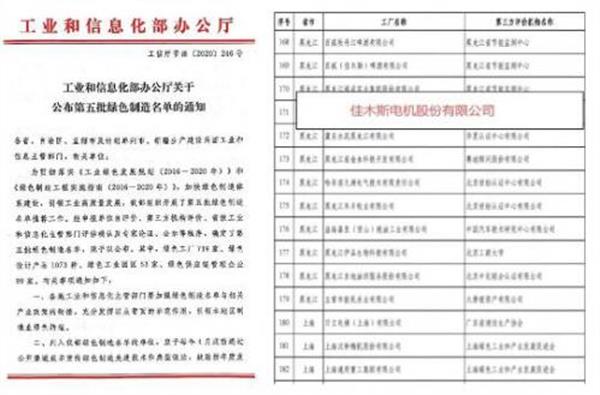 哈電集團佳電股份被工信部評為“綠色工廠”